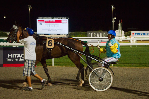 Enfin les chevaux et les jockeys se mirent en place derrière l’autostart pour le départ de l’épreuve de trot attelé courue sur une distance de 1609 mètres. Après une belle bagarre ce fut Radice Del Nord, dossard n° 6, drivé par L. Bechetti qui termina l’épreuve en tête, suivi pour la deuxième place de Reine du Zack, drivée par M. Smorgon et Sorrento Luis, dossard n° 5, drivé par G. Casillo, qui prit la troisième place.