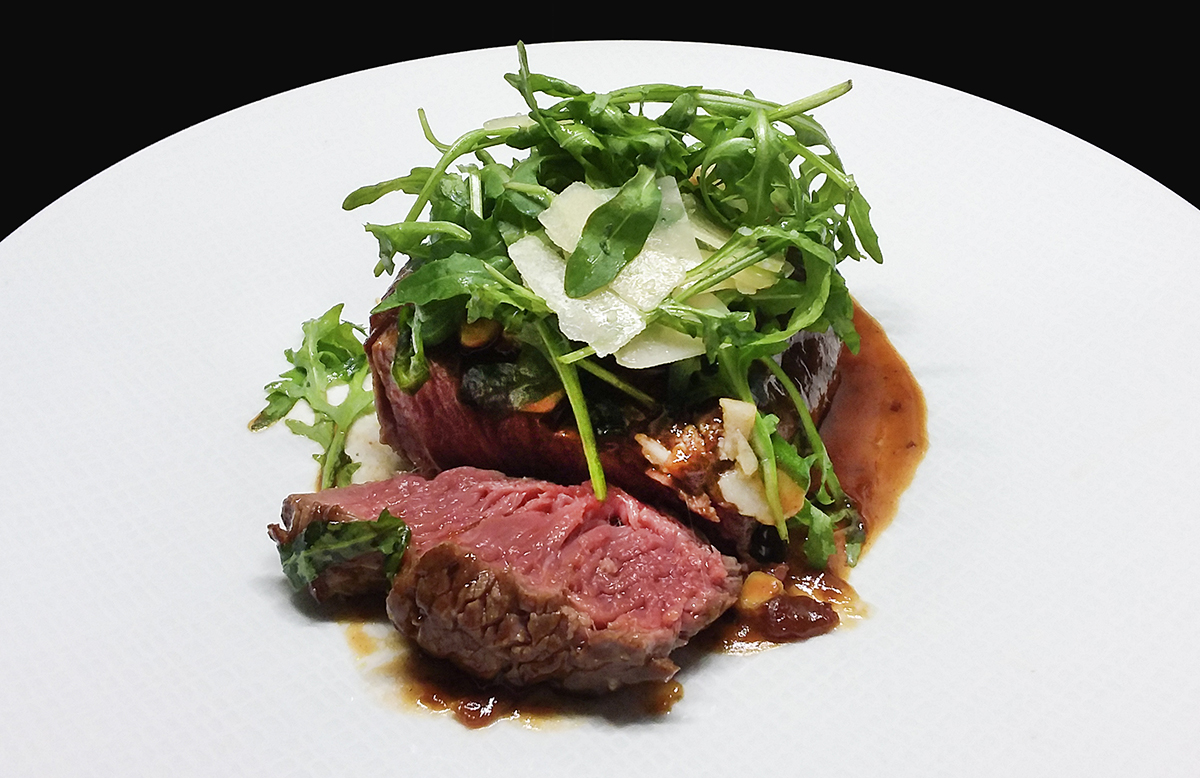 Cœur de Filet de Bœuf, Noisette pilées au Parmesan, Pousse de salade, Sauce Napoli ©YesICannes.com