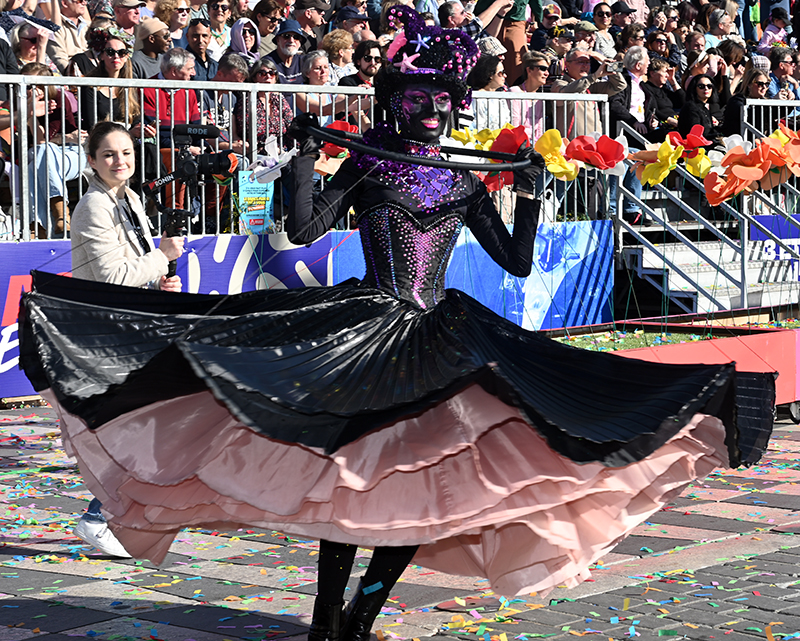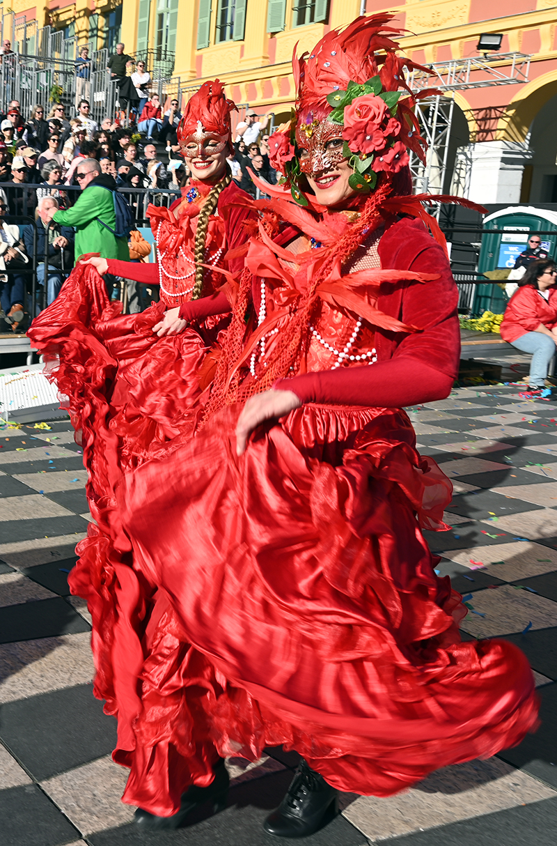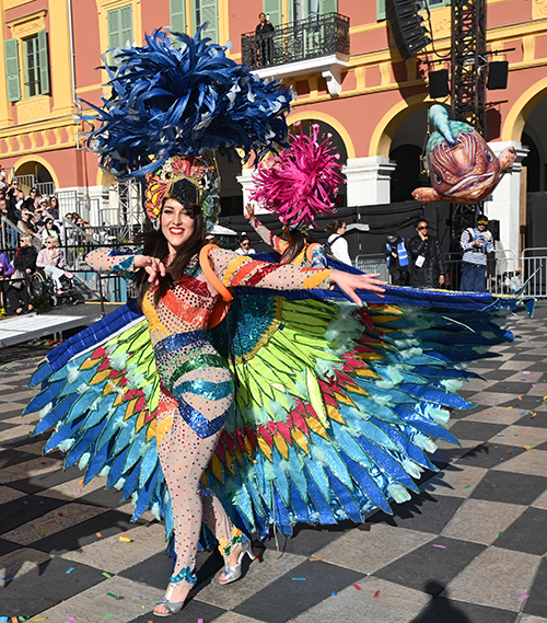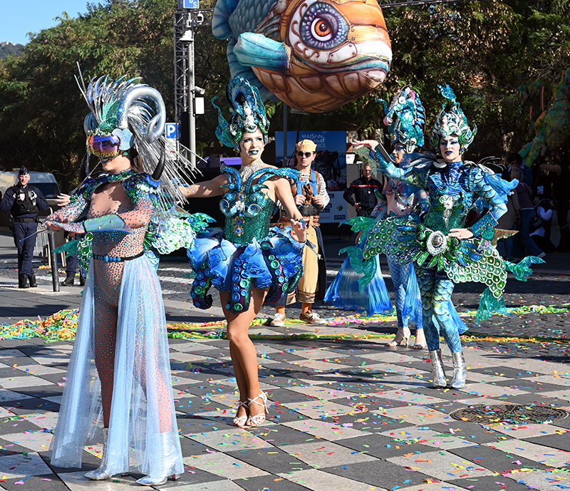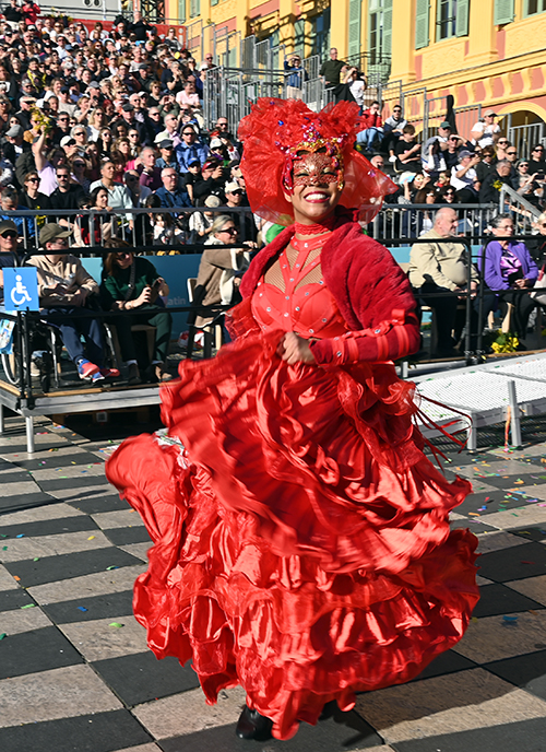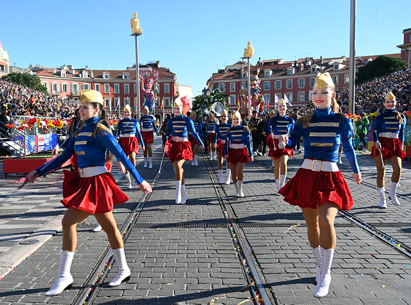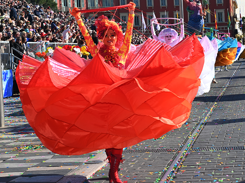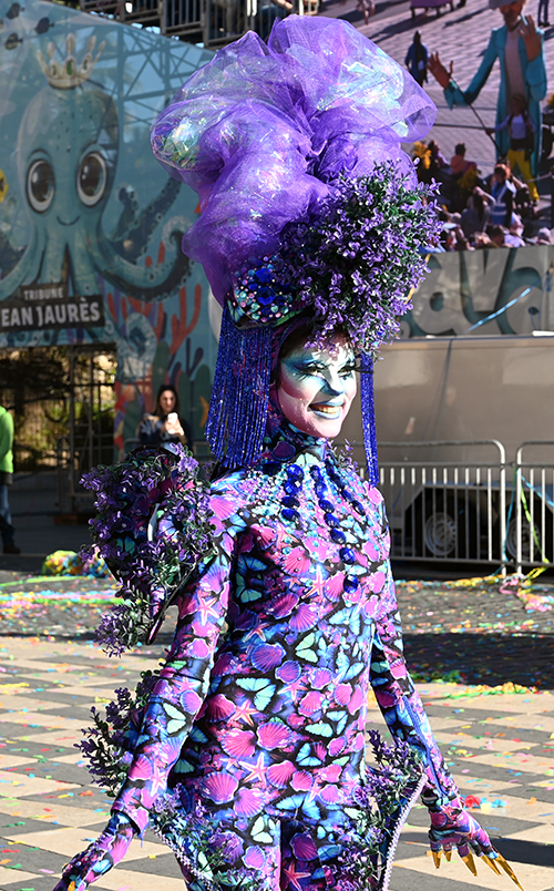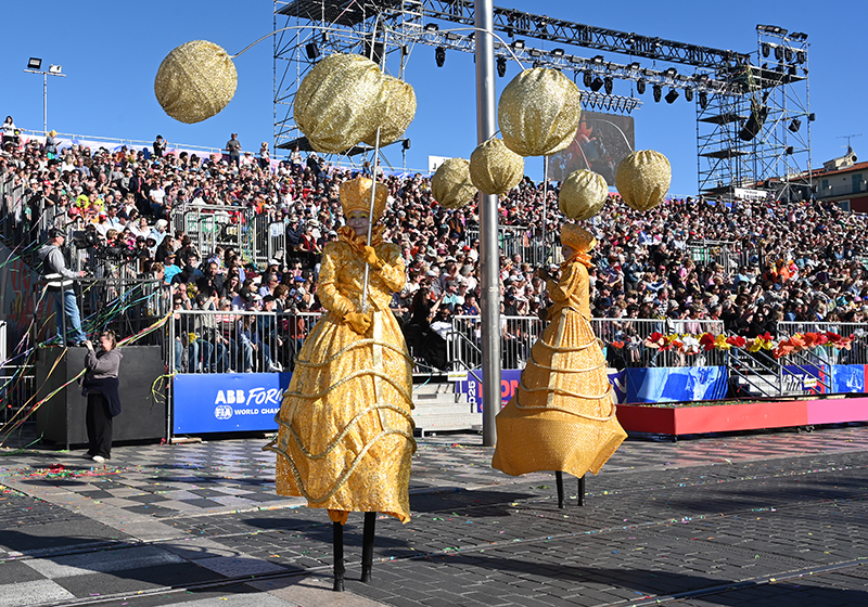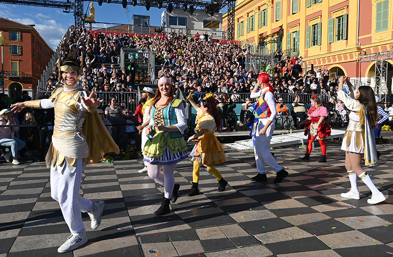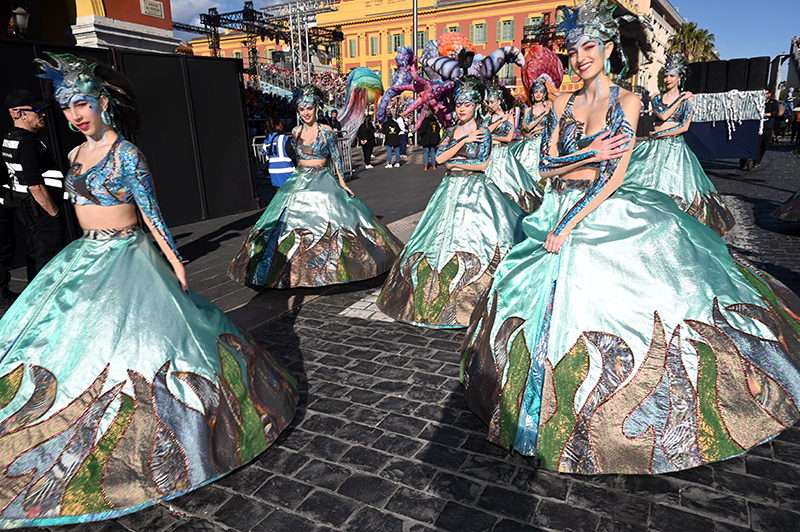 Bataille de fleurs : comme chaque année depuis un siècle et demi, au Carnaval de Nice, sa Majesté le Roi des Océans s’est emparé le 12 février des clés de la ville pour un règne éphémère qui durera jusqu’au 2 mars 2025. Chaque sortie du Monarque, entouré de sa Reine et de son Carnavalon, donne lieu à une déferlante de parades géantes de jour comme de nuit. Des chars volumineux et mécanisés, des costumes colorés, des grosses têtes, des musiciens, des danseurs, des acteurs de rue et les plus belles compositions florales des Bataille des Fleurs rentrent en piste pour faire le show.