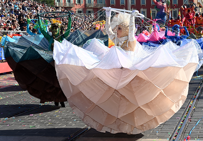 La Bataille de Fleurs – se déroulant les samedis et mercredis après-midi autour des Jardins Albert 1er et de la Place Masséna – est un spectacle unique au monde qui fait la renommée de la Côte d’Azur. Alliant élégance, beauté et charme, elle est animée par des troupes de musiciens, d’artistes de rue aux costumes extraordinaires où se mêlent senteurs et couleurs pour le plus grand plaisir des yeux ! Les chars entièrement tapissés de fleurs sont habités par de magnifiques mannequins, somptueusement vêtues de costumes follement originaux, ce qui ajoute au spectacle un aspect festif unique.