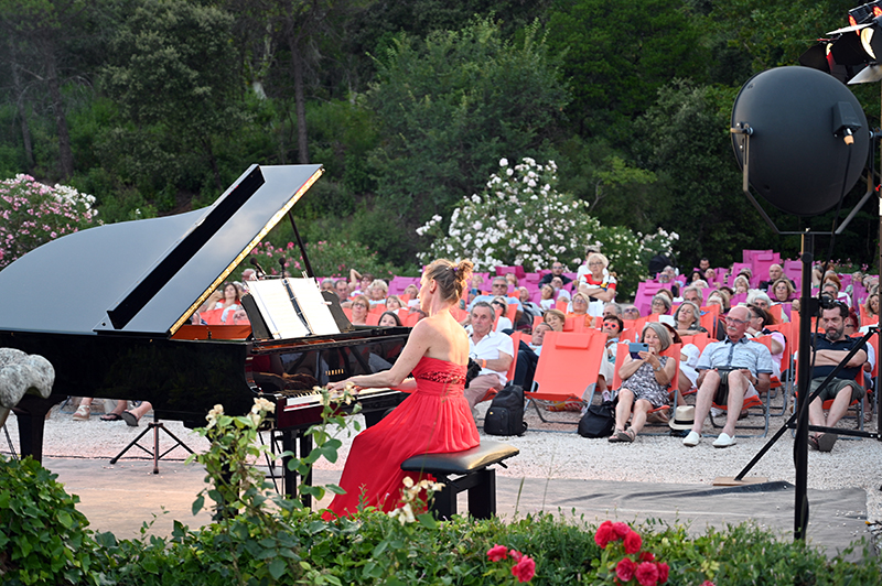 Château d’Astros : le festival Les Musicales dans les Vignes de Provence, organisé par Marie-Jeanne Chauvin, a fait étape au prestigieux Château d’Astros – où fut tourné Le Château de ma Mère – pour une soirée lyrique dédiée aux plus beaux Ave Maria du répertoire sacré ou issus de l’opéra. Réunis dans le parc du domaine pour une soirée musique et art de vivre, les mélomanes se sont délectés sous la voûte étoilée du ciel du Midi d’une anthologie des airs de grands compositeurs qui ont honoré la Vierge Marie et salué Sa grâce en écrivant de sublimes musiques et chants. Conjuguant talent musical et charmes féminins, Chloé Chaume et la pianiste Stéphanie Humeau ont interprété un florilège d’œuvres majeures du répertoire marial, touchant le public à l’âme. La soirée était présentée avec érudition et esprit par la séduisante musicologue Marie-Automne Peyrègne, directrice artistique de la Salle Gaveau.