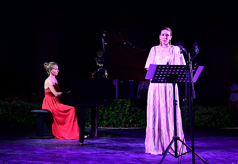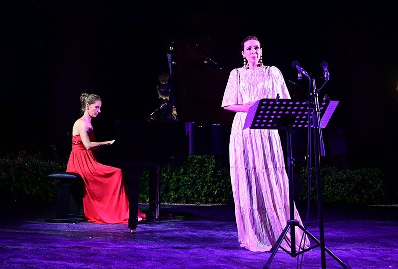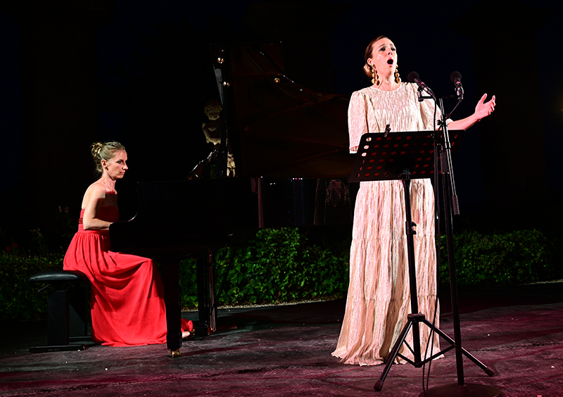 Chloé Chaume et Stéphanie Humeau ont mis leurs immenses talents au service de la gloire de la Vierge Marie, et salutations, prières et suppliques à la divine Mère se sont envolées vers le ciel étoilé sur les ailes des notes de piano. « On dit qu’il faut prier comme si l’action était inutile, a évoqué Marie-Automne Peyrègne en prélude au concert, et agir comme si la prière était insuffisante. » Ecouter, se recueillir, être en communion avec les artistes, c’est ce à quoi le programme des œuvres, interprétées avec justesse et sensibilité, a porté le public enthousiaste, alors que les cigales cessaient progressivement de chanter en cette belle nuit d’été et que les Ave Maria s’enchaînent comme les grains d’un chapelet liturgique. Sous le charme de cette soirée 100 % féminine, bouleversé par ce répertoire d’œuvres variées, hautement spirituelles mais qui parlent à tout le monde, magnifiées par la qualité d’expression des artistes tant à la voix qu’au piano, l’auditoire a atteint une rare plénitude musicale.