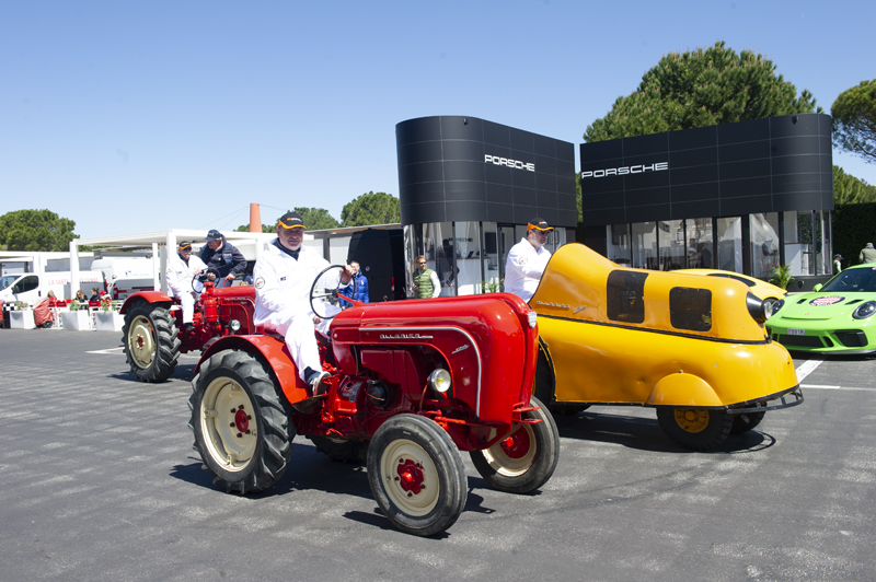 Claude Varon, président de la Fédération Porsche de France et François Degrémont devant un tracteur collectionneur Porsche ©YesICannes.com