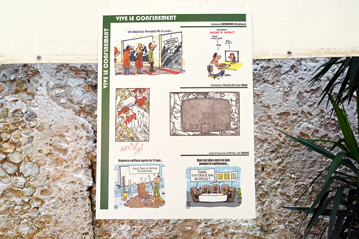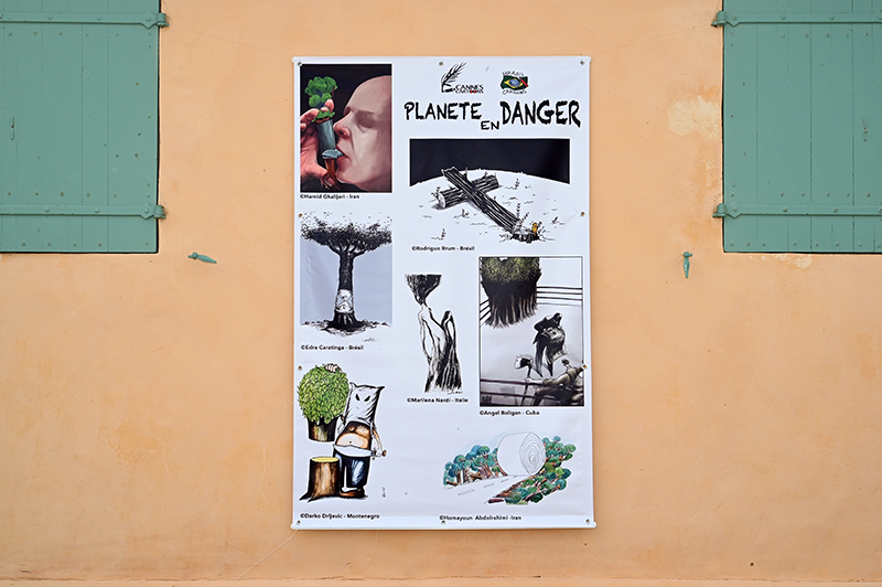 La première, organisée par Cannes Cartoons, en collaboration avec le Festival du Maciço de Baturité au Brésil, s’est intitulée « Planète en Danger« . La deuxième portait sur « l’écologie et l’environnement » par Au Bout du Crayon. Toujours dans le même registre et pour faire durer le plaisir, l’exposition « Confinement Finement Cons« , organisée par la Fidep (Festival de l’Estaque), fut l’occasion de découvrir la vision d’artistes sur l’état de la planète Bleue, à travers des dessins humoristiques, décalés et décapants.