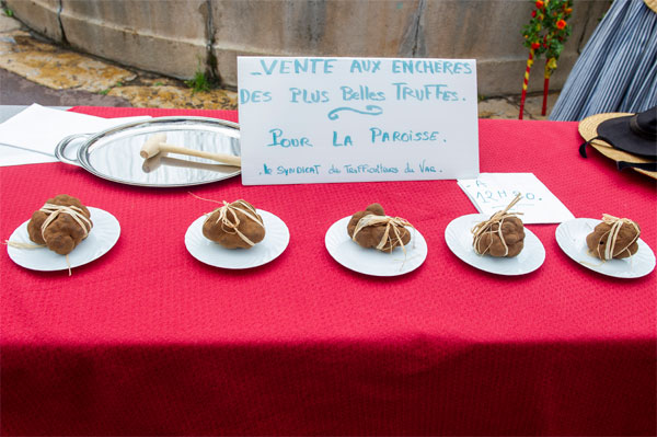 Le Marché de la Truffe à Aups, 3ème de France de par son importance, se tient tous les jeudi matins, du dernier jeudi de novembre jusqu’au dernier de février. Les rabassiers, reconnaissables à leurs chasubles, chapeaux noirs et foulard rouge au cou, présentent leurs truffes délicatement nichées dans des paniers d’osier. Le cours est fixé par les courtiers, en fonction de la qualité et de l’importance des truffes mises à la vente. Une bonne truffe est celle qui est lourde, qui sent fort, à la texture noire marbrée de blanc. Un coup de canif peut permettre de vérifier la chair du Diamant Noir. La truffe se consomme fraîche, en lamelle ou râpée, et ennoblit tous les plats, même les plus simples, ravissant les papilles de son parfum charnel et envoûtant.