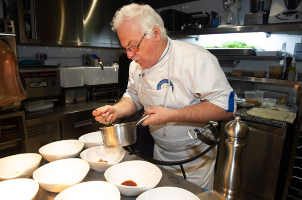 Séduit par le lieu, les vieilles pierres et le parfum de la truffe qui s’exhale dans toute la ville, ce chef de talent, humble par nature et généreux dans l’âme aussi bien que dans ses plats, reconnaît: “La truffe m’a adoptée!” Et d’expliquer: “La truffe est un produit tellement noble que je ne la cuisine pas, je l’accompagne. C’est comme un top modèle que j’habille!” Dans ses créations, le chef aime révéler et faire partager les parfums de sa terre et mettre en communion les produits de son terroir et sa créativité. Ses légumes proviennent d’une petite production biologique d’Aups, Campagne Lunounette. Il fait venir sa viande d’Argentine – souvenirs d’enfance -, son fromage de brebis de chez Apostolo à Sillans La Cascade. La truffe et l’huile d’olive proviennent du producteur et récoltant aupsois Fabien Daini et le safran de Tanneron.