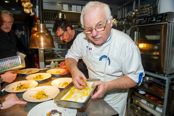 Le plat signature de Sebastian est le Huevos Rotos, un grand classique de la gastronomie espagnole qu’il aime faire découvrir à tous ses clients. Sebastian a obtenu le Titre de Maître Restaurateur en 2016 et fait partie des Disciples d’Auguste Escoffier du Var, des Toques Blanches International Club, ainsi que des Membres du Grand Cordon d’Or de Monaco. A ses côtés, son épouse Nadine se passionne pour la pâtisserie et les douceurs. En 2018, son talent et sa créativité l’ont emmenée en finale régionale de l’émission de M6, Les Rois du Gâteau. Pour ces menus d’exception de la Fête de la Truffe, Sebastian était secondé par l’un de ses pairs, Jean-Louis Rizzo, membre éminent des Toques Blanches International Club.