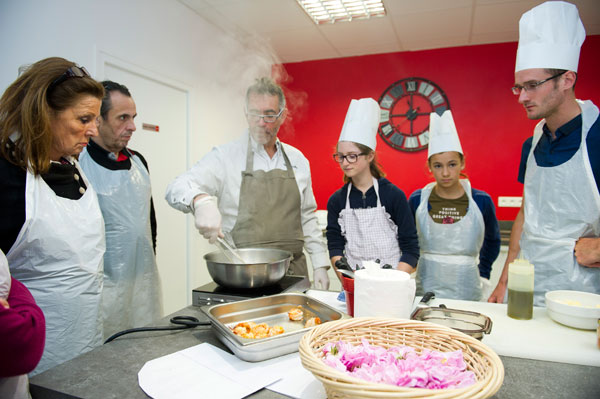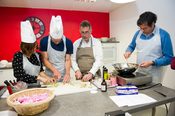 La Cuisine des Fleurs du chef Yves Terrillon décline en cuisine des fleurs toute l’année, selon les saisons, dans son atelier de cours de cuisine sur le thème des fleurs grassoises.