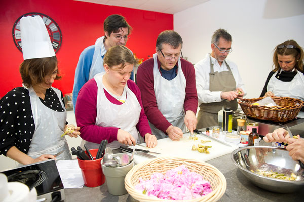 Les fleurs ont la particularité d’apporter à sa cuisine des couleurs uniques, des saveurs subtiles, des contrastes et toutes les déclinaisons auxquelles peuvent se prêter les fleurs, de l’entrée au dessert, sucré, salé. Essayer, c’est être séduit: une journée de cours avec dégustation coûte 80 € seulement, avec amuse-bouches, kir à la rose, vin, eau minérale et café!