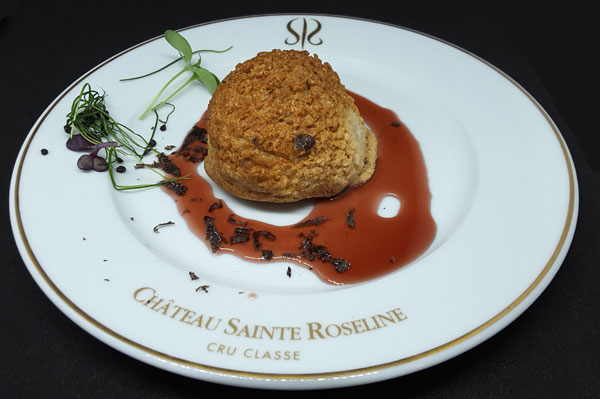 Pour les accords mets/vins de ce déjeuner autour de la Truffe, le sommelier avait sélectionné des vins Rouge (2012) et Blanc (2014) issus de La Cuvée Prieure, le fleuron du Château Sainte Roseline La Cuvée Prieure sublime des vins provenant des parcelles les plus ensoleillées du domaine, offrant de riches vins dédiés à la gastronomie. La Cuvée Prieure Blanc est un mono cépage issue de la Rolle, élevé dix mois en fût de chêne pour lui donner des notes toastées. La Cuvée Prieure Rouge est constituée d’un assemblage de 25% de Cabernet et de 75% de Syrah. Le vin est élevé en barriques – dont la moitié de vieux fûts – pour arrondir la puissance du vin et lui donner un remarquable équilibre de tanins.