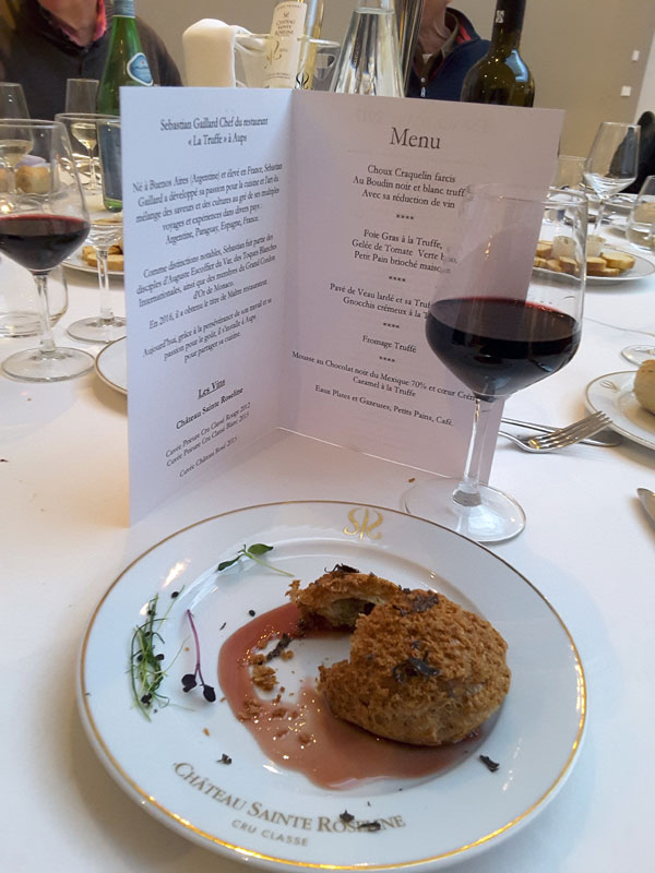 Amuse bouche: Chou Craquelin farci au Boudin Noir et Blanc truffé avec sa réduction de vin