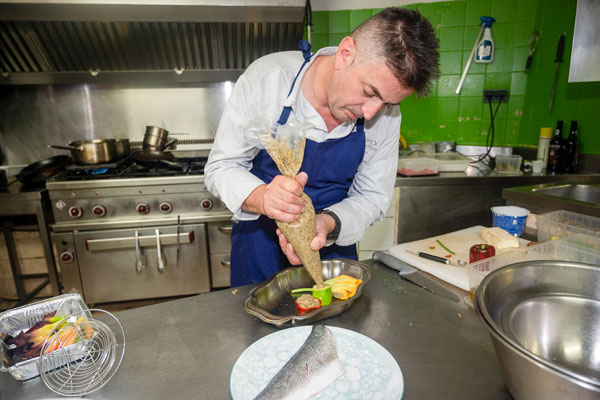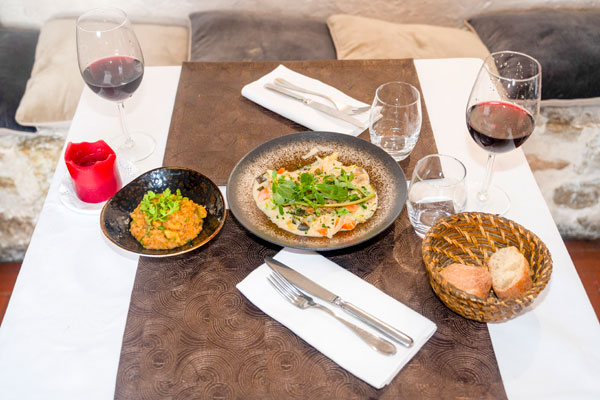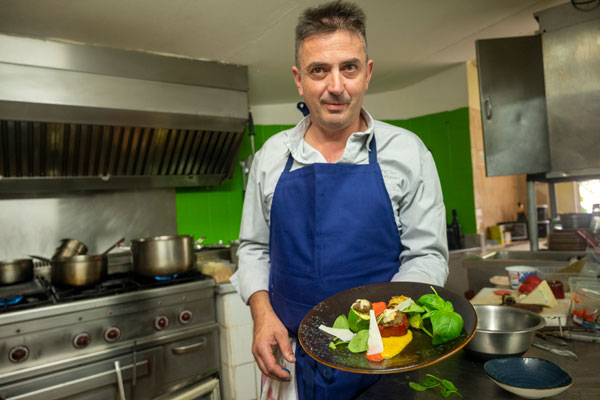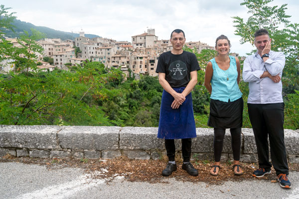 Les légumes et les fruits de sa carte proviennent des petits producteurs de Tourrettes. En cuisine, le chef joue du piano pour concocter une cuisine simple et goûteuse, aux assaisonnements parfaits et aux dressages élégants. Ses assiettes délicates, colorées et odorantes sont au diapason du cadre féérique extérieur. Ce chef passionné vit un tête à tête quotidien, intime, et fusionnel avec les ingrédients du terroir provençal. Ses généreuses assiettes fleurent bon les herbes, cueillies fraiches au petit matin dans le jardin du maestro.