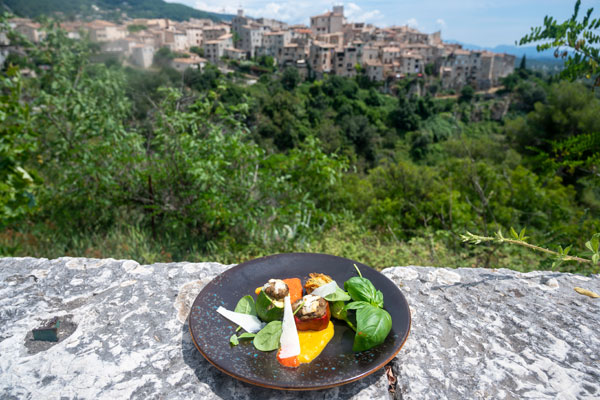 Au Sansot à Tourrettes-sur-Loup, le Maître Restaurateur Stéphane Furlan propose sur un panorama grandiose ses délices gastronomiques sublimant les productions locales de la Cité de la Violette.
