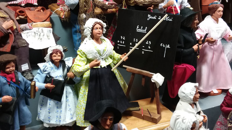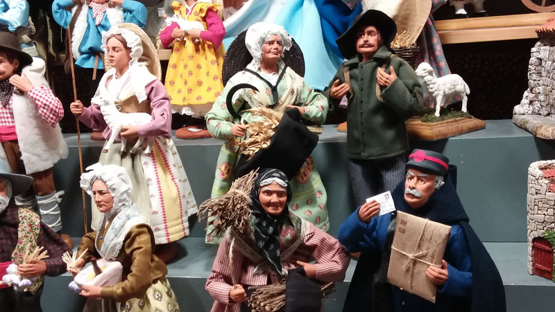 Pour palier à la fermeture des églises et la suppression de la Messe de Minuit imposée par la révolution française, la Provence a réagi par la création de petits personnages, “les santouns” ou “petits saints”, d’abord en mie de pain puis en argile peinte pour que chaque provençale installe une crèche de dans l’intimité de son foyer pendant les fêtes. La tradition s’est perpétuée avec, autour de la scène de la nativité, l’apparition de nombreux personnages portant le costume professionnel et les insignes de leur métier. De quoi retrouver nos racines culturelles dans la sérénité en prélude de noël.