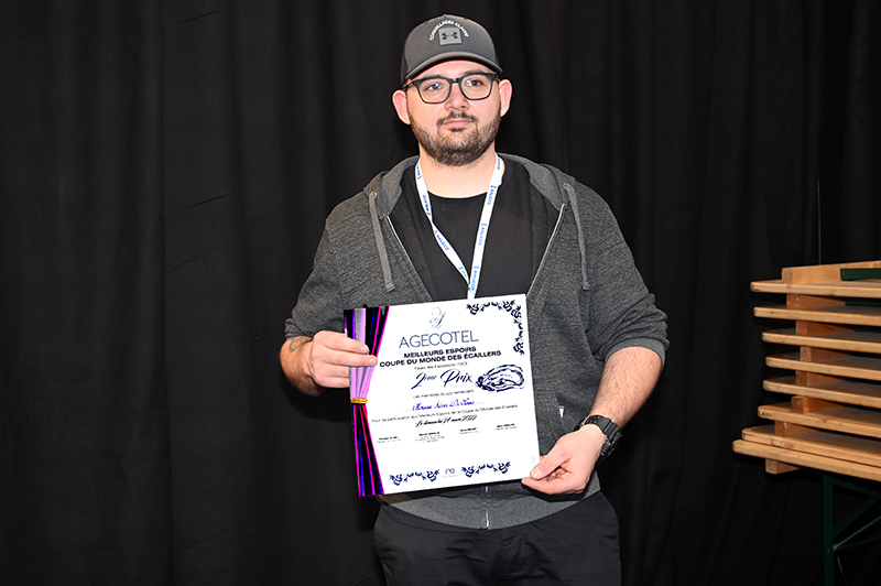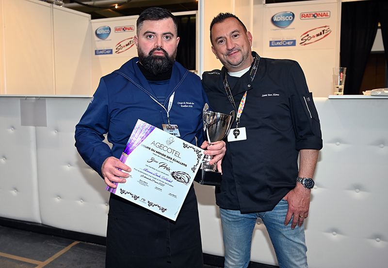 Agecotel. La sixième édition de la Coupe du Monde des Écaillers s’est déroulée le 27 mars 2022 au salon Agecotel de Nice. Le concours s’est déroulé sous la houlette de Marcel Lesoille, consultant et conseiller culinaire et Champion du Monde d’ouverture d’huîtres creuses. Devant un jury de spécialistes, les candidats de huit pays (Suisse, Espagne, Monaco, Algérie, Maroc, Allemagne, France) ont démontré leur savoir-faire, de la conception du plateau à sa réalisation : équilibre de la présentation, propreté du poste de travail, adaptation à la dégustation…