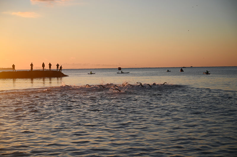 Après avoir effectué les 1,5 km (format M) ou les 1,9 km (format L) de natation, chaque participant, le cœur au ventre, déploya une incroyable énergie pour lutter contre les courants marins et essayer de décrocher le meilleur chrono. À la suite de cette première épreuve disputée dans les flots, il n’y avait plus une seconde à perdre et chacun parti au pas de course jusqu’au village Scoda TriGames pour récupérer son vélo et enfiler sa tenue de cycliste: cuissard, maillot et casque.