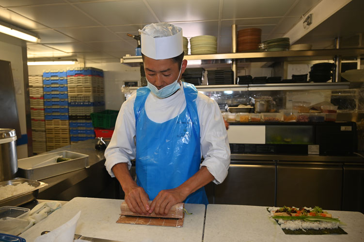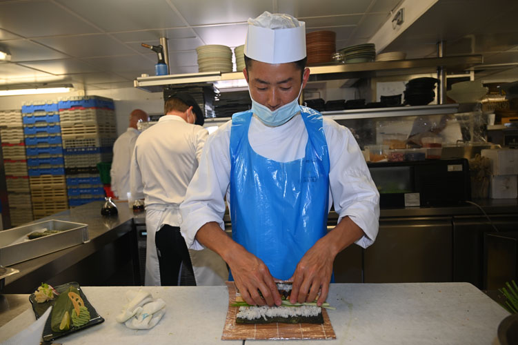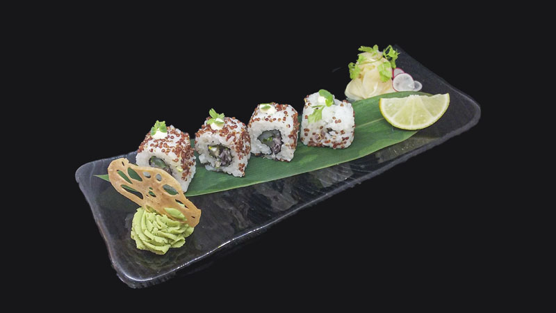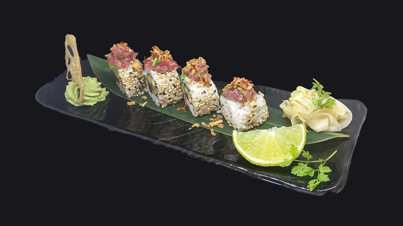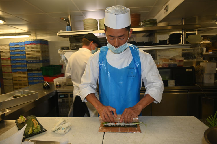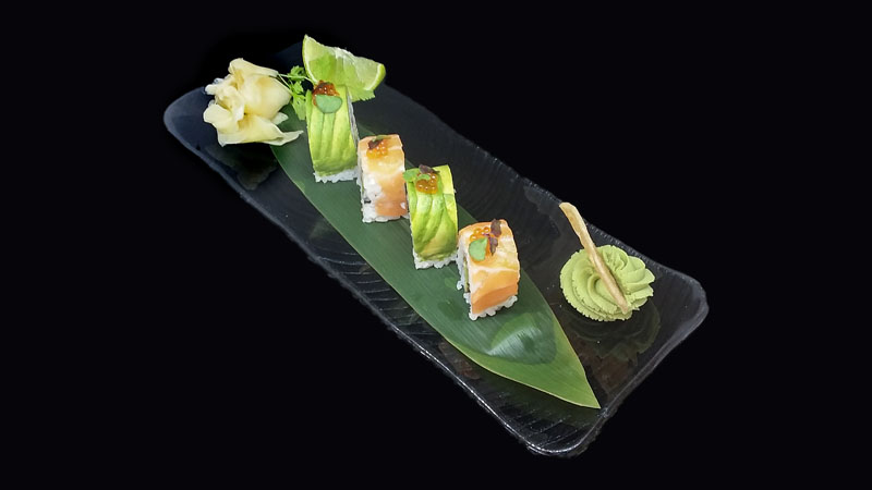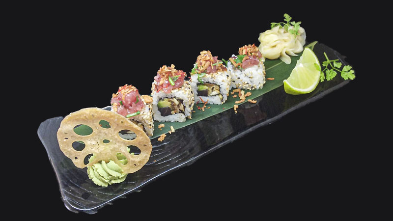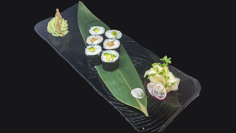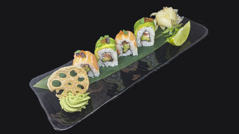 Dans la pure tradition japonaise, à partir des produits frais du jour, le chef japonais Shintaro Suzuki (Maître sushi au Nakano-Ku et au Shikiné à Tokyo et au Kamogawa à Nice) vous fait partager son savoir-faire à travers un large choix de sushis aux compositions subtiles, agrémentées d’une touche d’inventivité: Thon Maguro (avocat, sauce barbecue, oignon frit), Saumon (avocat, piment) et Aburi de Saumon label rouge écossais, Anguille Grillée, Thai Crevette Tempura (sucrine, oignon, mayonnaise japonaise), Dorade Quinoa (yuzu, jeunes pousses japonaise), King Crabe Fève de Soja (tobiko, mayonnaise japonaise au curry), Poulet Katsu (hala, chou, sauce moutarde, miso), Edamane à la Truffe et gomasio ou le Végan Roll à la Truffe d’été.