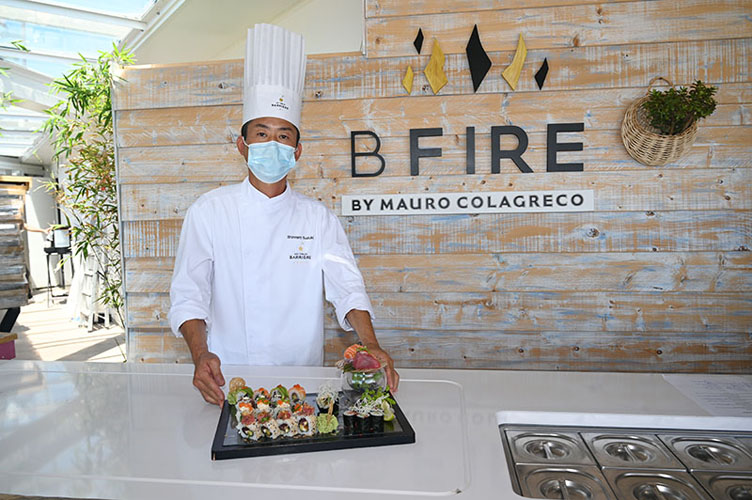 Ce lieu idyllique affiche résolument l’originalité culinaire avec son concept B Fire by Mauro Colagreco, une marque créée il y a deux ans par le Président du Groupe Barrière, Dominique Desseigne et le chef trois étoiles Michelin du Mirazur à Menton. La plage affiche également un concept de gastronomie voyageuse à partager avec les sushis du chef Shintaro Suzuki à déguster à toute heure de la journée.