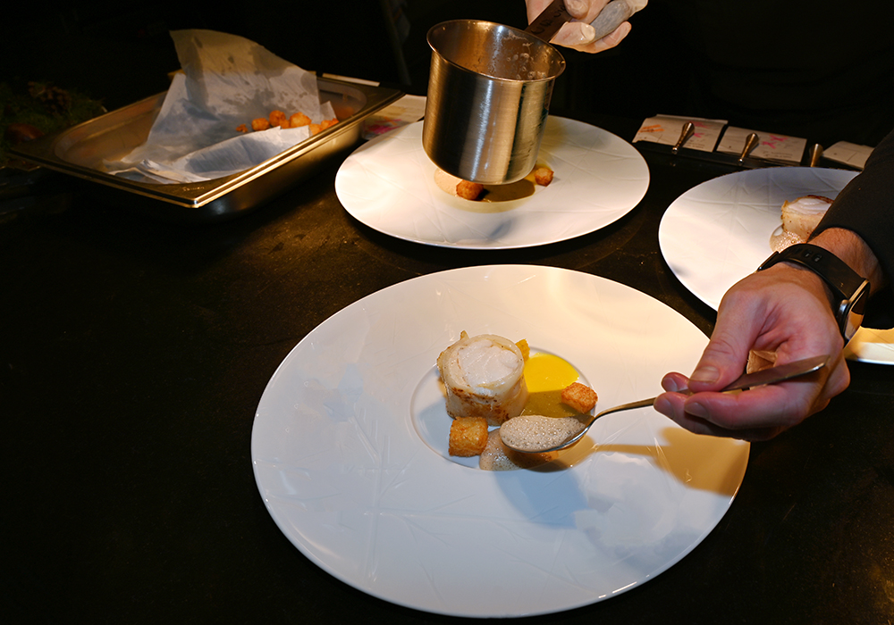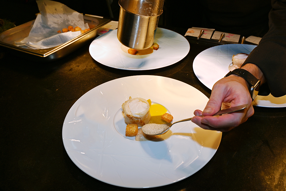 Lotte & Moules de Bouchot: Tapioca aux kumquat fermenté, mole verde & jus de céleri perlé aux rocous ©YesICannes.com