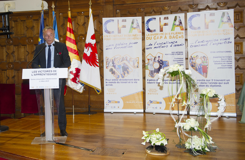 La 1ère édition des Victoires de l’apprentissage, organisée avec le soutien de la Ville de Nice le 11 mars 2019, a été parrainé par Nicole Merlino Manziano, Adjointe à la Ville de Nice et Présidente du Conseil d’Exploitation de la Régie des MIN d’Azur, en présence du recteur de la région Emmanuel Ethis, de l’Ophtalmologue Patrick Desprez, et de David Bouguain de La Vie Claire à Beausoleil. Cette soirée a alterné des discours politiques, des remises de diplômes, des éléments d’informations sur la nouvelle loi et sur la place de l’éducation nationale dans l’apprentissage démonstrations pratiques et film vidéo.