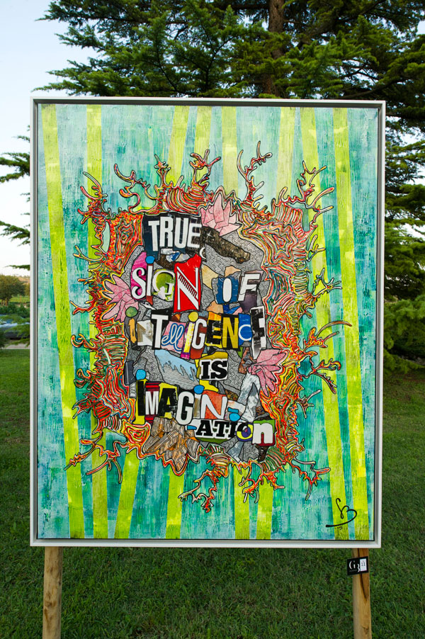 Tout au long de la soirée, les mélomanes ont pu admirer les œuvres du peintre et plasticien Gregory Berben. Né à Cannes en 1974, Gregory Berben est un artiste plasticien, peintre et sculpteur, autodidacte au parcours atypique. Professionnel dans le sport pendant une douzaine d’années, il a jonglé avec ses deux carrières. Comme les expositions se succédaient, il a rangé ses baskets pour se consacrer à l’art au début de l’été 2009. Ses œuvres sont une ode à l’énergie de la vie. Ses peintures, collages et créations originales, basées sur le recyclage et ses sculptures pleines de couleur et d’intensité, parcourent le monde: Hong Kong, New York, Miami, Monaco, Paris… Depuis Juillet 2015, l’artiste a transféré son studio dans la résidence d’artistes « Le Suquet des Arts » dans la vieille ville du Suquet, en collaboration avec la Ville de Cannes.