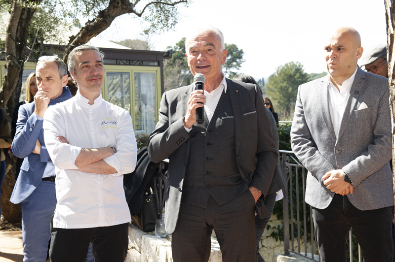 La cérémonie de remise de la célèbre plaque rouge a été orchestrée par Ludovic Venitucci, le Directeur de Métro Cannes, en présence du directeur de l’établissement Giuseppe Cosmai, du second de cuisine Maxime Fontvieille, du chef pâtissier Olivier Roth, du directeur de la restauration Ionin Sergey, du chef sommelier Julien Leroux et de la chargée de communication Carole Rouvier. Le Maire de Mougins Richard Galy et son équipe municipale ainsi que quelques fournisseurs comme les Champagnes de la maison Philipponnat, des journalistes gastronomiques assistaient à l’événement… Tous ont fêté la reconnaissance de l’excellence gastronomique sur la superbe terrasse panoramique du Mas Candille, une coupe de Champagne Philiponnat à la main en dégustant les délicieux mets concoctés par la brigade du Candille, sous la houlette de Xavier Burelle.