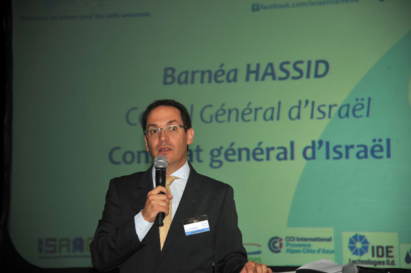 Barnea Hassid, Israeli Consul in Marseilles said: “In Israel, every drop of water is used at 100 % of its efficiency, and even reused several times.” As a prelude to the international fair “WATEC Israel 2013” on water technology and renewable energy, which will be held from October 22 to 24, 2013 in Tel Aviv, the Israeli Consulate in Marseille organized a meeting on the theme of water technologies and protection of environment in partnership with the Palais des Festivals in Cannes, the Ea éco-entreprises Association and the Provence-Alpes-Côte d’Azur Chamber of Commerce and Industry.