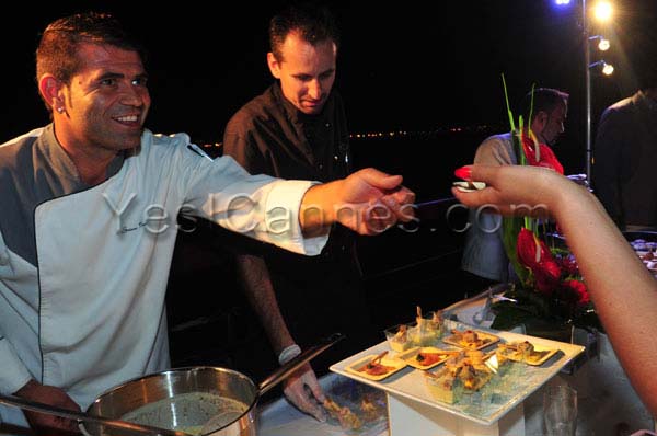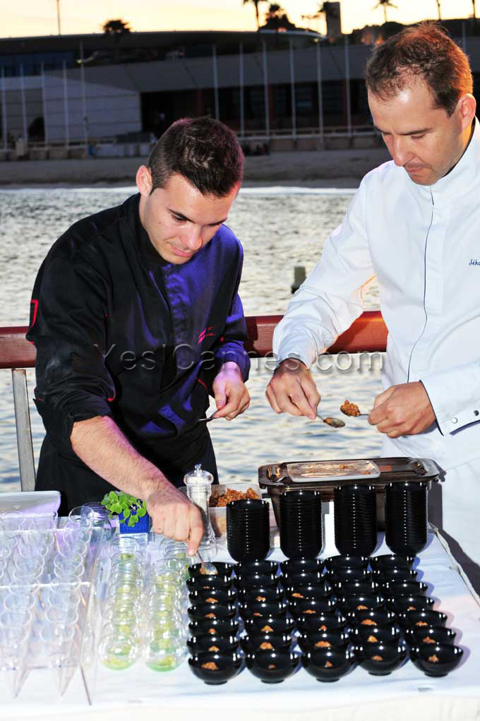 For this fourth edition, on a dream pontoon with magnificent view over the bay of Cannes, prestigious chefs of the two countries were thus gathered for this gala to offer the many epicureans a great show around the gastronomy, working hand in hand to prepare a buffet representative of their respective talents.