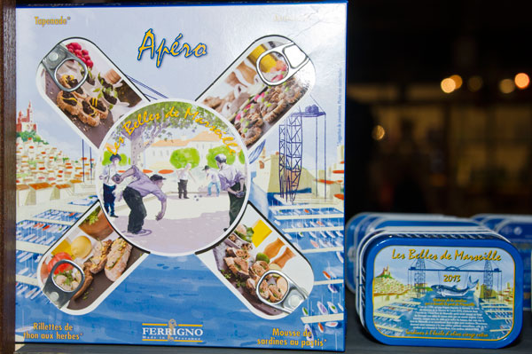 These sardines, oven-baked to make them lighter and more digestible, are sold in a Les Belles de Marseille box of four collectible tins of sardines, adorned with beautiful scenes of Marseille. The box contains Sardines with Pastis, The Pitchounettes, Sardine in Olive Oil, Sarines with Pescadou. Let them age in their box, they improve with time.