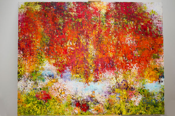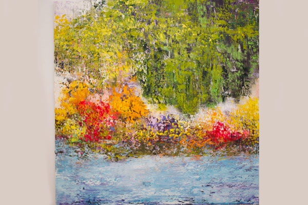 The Danish artist presented a range of colorful oil on canvas expressing her love of life, her happiness and energy in a abundance of thick dashes of bright colour, applied with a painting knife. The harmony of her impressionist work, in which the forms have faded away in favor of the poetry, takes the viewer deep into her universe of shades and colors, to reach an “Oasis of Happiness” in the heart of Mother nature.