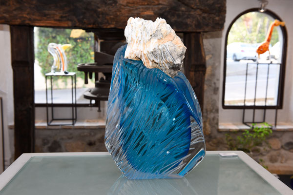 During the evening, the guests were able to admire during their stroll through the gallery, the contemporary works of Robert and Antoine Pierini, of Nicolas Laty, Biot glass artist, Ada Loumani, Maitre Verrier in Valbonne and works made in collaboration with Claude Pelletier, goldsmith and jeweler.