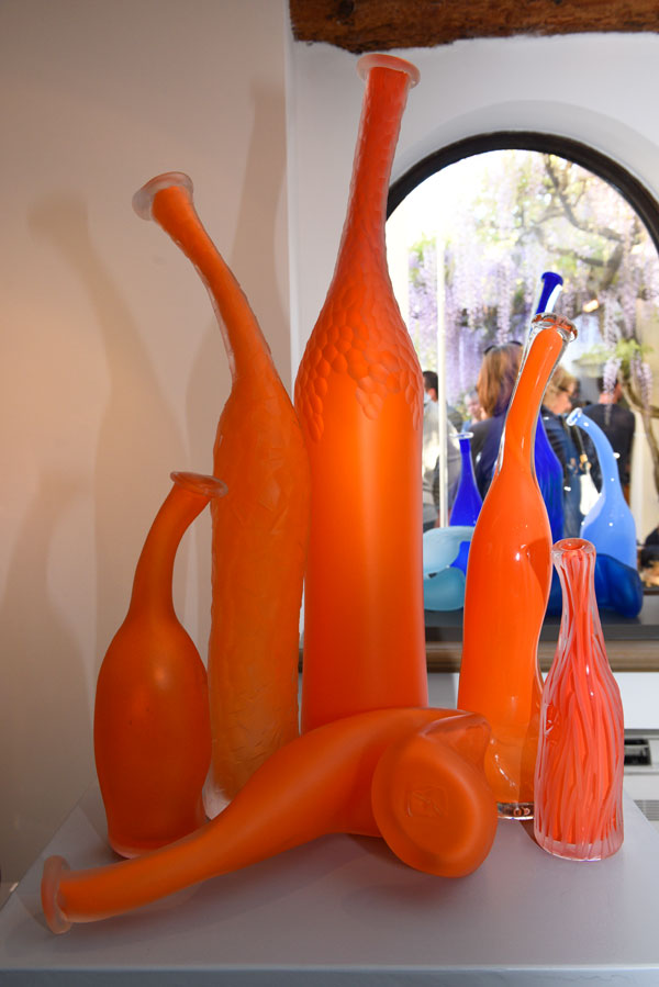 Today, the art glassworks is completely rebuilt and a new melting furnace was baptized on 16 April to the delight of artists who came back to exhibit in the gallery. A festive evening which was held in collaboration with the starred chefs Michael Fulci (restaurant Les Terraillers in Biot), Jean-Claude Brugel from Les Thermes Marins in Monte Carlo, Emmanuel Lehrer from the Relais & Chateaux Le Mas de Pierre in Saint Paul Vence. The chefs had the honor to perform the Glass Art Cooking with the team of Pierini glassmakers.
