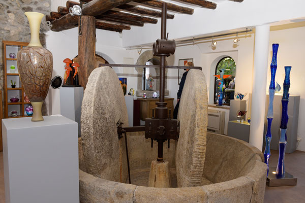 The Galerie Pierini Verre Contemporain is located at the entrance of the village of Biot, in a former oil mill of the 15th century, partly built with stones from the ancient fortress of Biot. It is in this exceptional setting, where Biot history and artistic heritage harmoniously blend that the Maitre Verrier Robert Pierini settled in 1979.