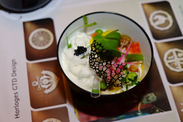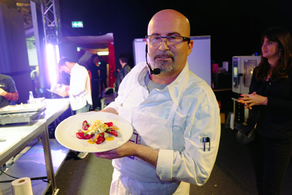 On Sunday, Didier Chouteau, from the Amandier de Mougins, has demonstrated the Sar “de Petit Bateau” in a Beetroot ravioli, candied Kumquat, salad of Granny Smith. Christophe Dufau, chef of Les Bacchanales in Vence, dazzled the audience with his Goat Cheese from Tourettes sur Loup, Krakers des Bacchanales with Malt flour.