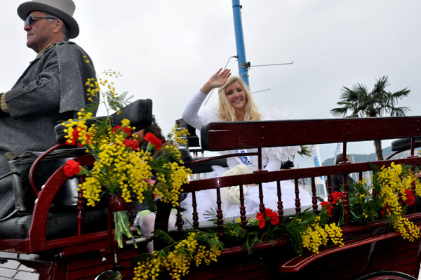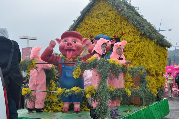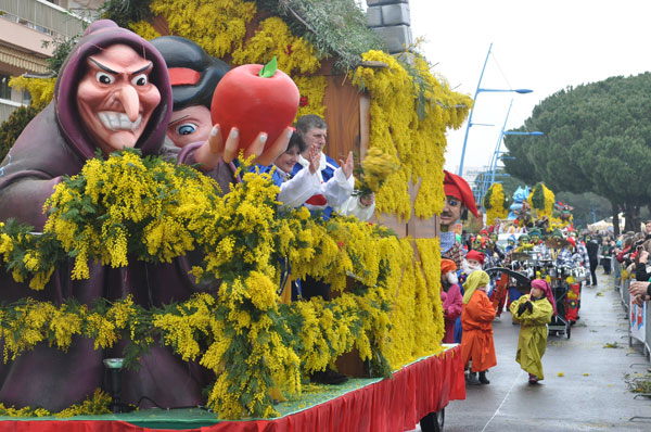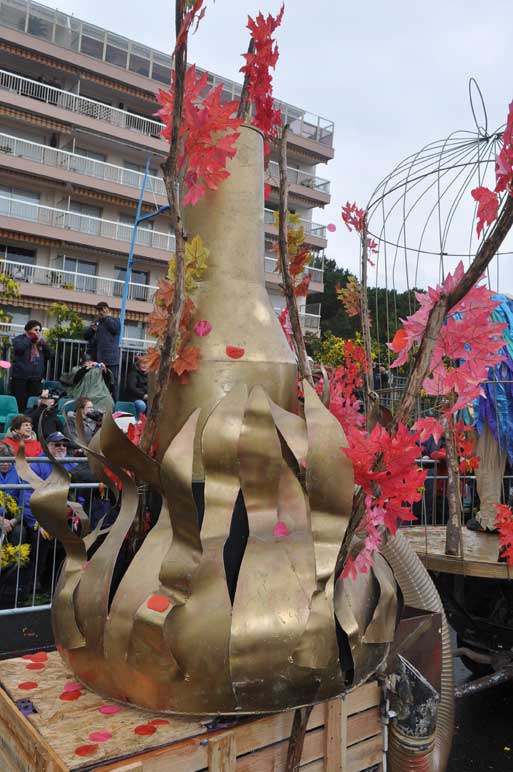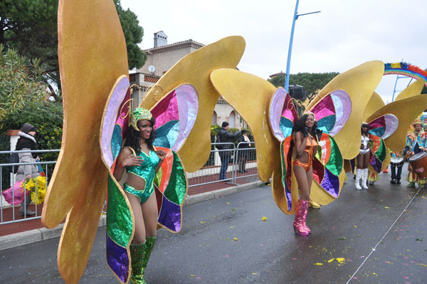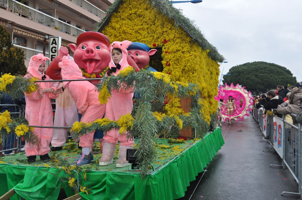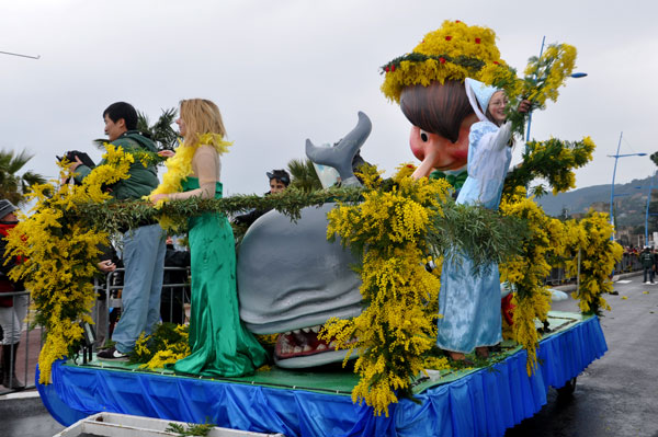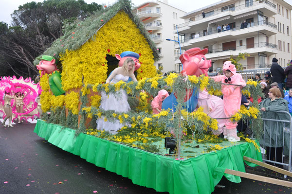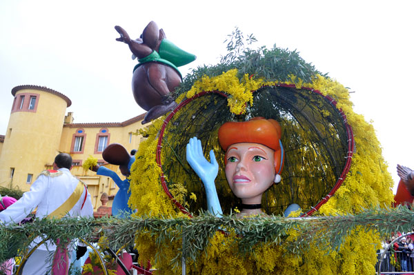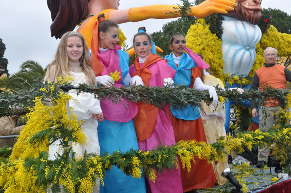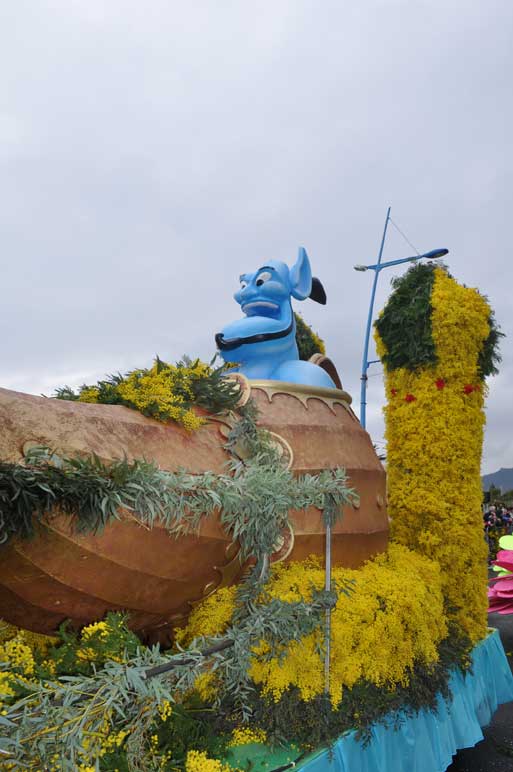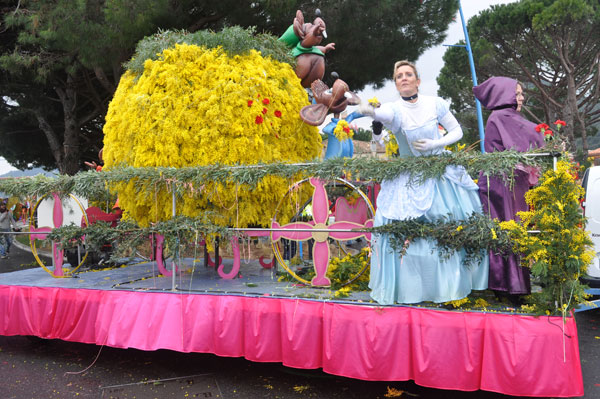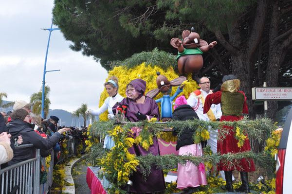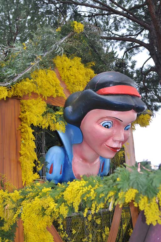 fete-mimosa-2013-296Despite an uncertain weather until the last minute, the Fête du Mimosa great final corso on February 24 was held at the pace of a big flower parade and miraculously without an umbrella. It is in front of thousands of people from all corners of France and the world or simply from Mandelieu, that 8 floats filled with gold accompanied with street animations marched on Clew Avenue in La Napoule, telling a story on the theme of fairies tales who delighted the young and old. As in an open book, Cinderella, Snow White, Ali Baba or Aladdin let the amazed audience revive an entire chapter of their childhood. The floats made with clusters of small golden pompons blooms have filled the hearts with the sun absent from the sky and sprigs of mimosa fell like rain over the crowd, profusely thrown by children and pretty girls come to inhabit this magical world for a few hours.