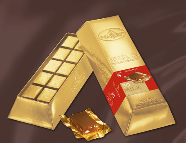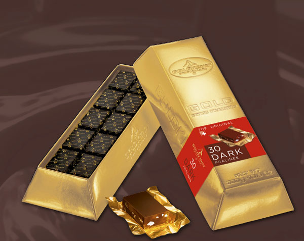 The recent delicious creations were designed with an elegant spirit that will appeal to young and old alike. The Goldbars consist of delicious chocolate pralines coated with fine Swiss milk or black chocolate. Each recipe includes a mixture of almonds and hazelnuts. Anxious to continue to offer its customers new creations, the innovative masters are forced to constantly revise the classic recipes with exciting new gourmet ingredients.