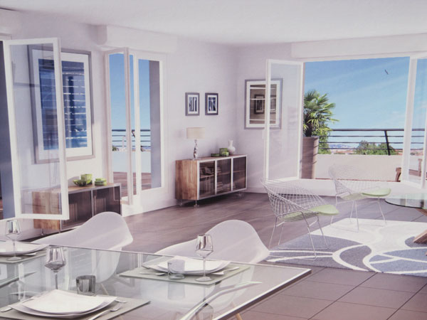 Renowned architect Renaud of Hauteserre, responsible, amongst others, for the extension of the Hotel Majestic in Cannes, imagined for Green Marina a good-looking building, surrounded by greenery, flanked by majestic pines and palm trees. The alternating colors of the facades and break movements of the top floor give the whole a fine touch of elegance.