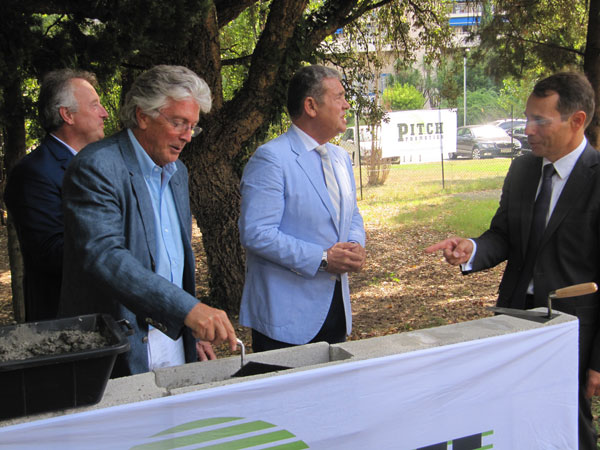 Surrounded by many guests, Mr. Christian Terrassoux, CEO of the company Pitch Promotion and Mr. Henry Leroy, Mayor of Mandelieu La Napoule, Vice-President of the General Council of the Alpes Maritimes, proceeded to lay the first stone of this ambitious program.