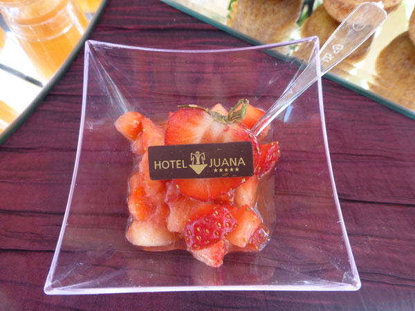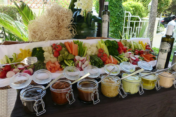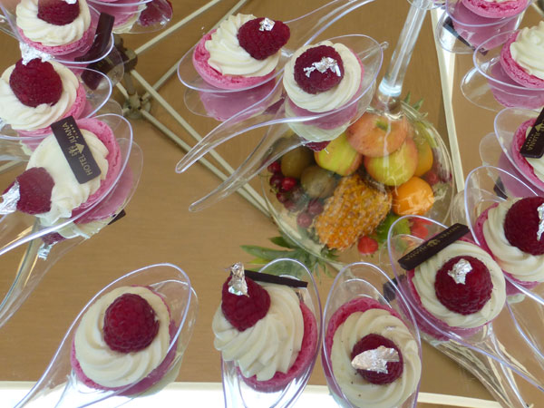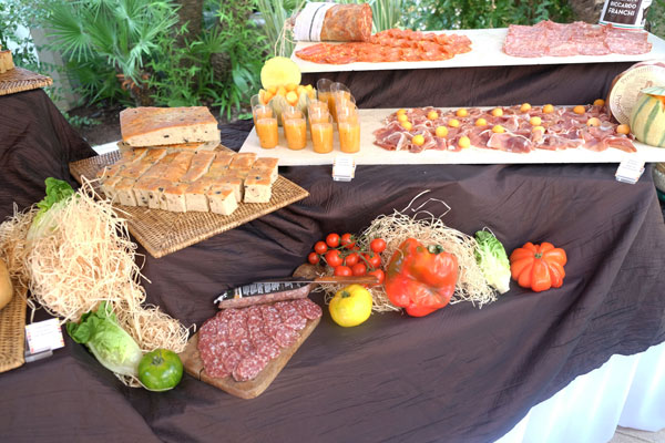 On a beautiful June morning, the tables had been set on the terrace flooded by the sun and greenery. The buffets were full or refined dishes and products of excellence carefully prepared by the chef Andrea Sangiuliano and his team to make us enjoy unforgetable moments of delicious gastronomy. Fine vegetables and seasonal fruits with vivid colors and southern flavors such as tomatoes, peppers, artichokes, cherries, melons, apricots, and many other again, enlivened the buffets. The Rosé de Provence, light and fruity with salmon-pink highlights, helped to enjoy this beautiful sunny and tasty getaway, in the company of the most charming and talented gourmet guide designers: Jean-Pierre Hubert.