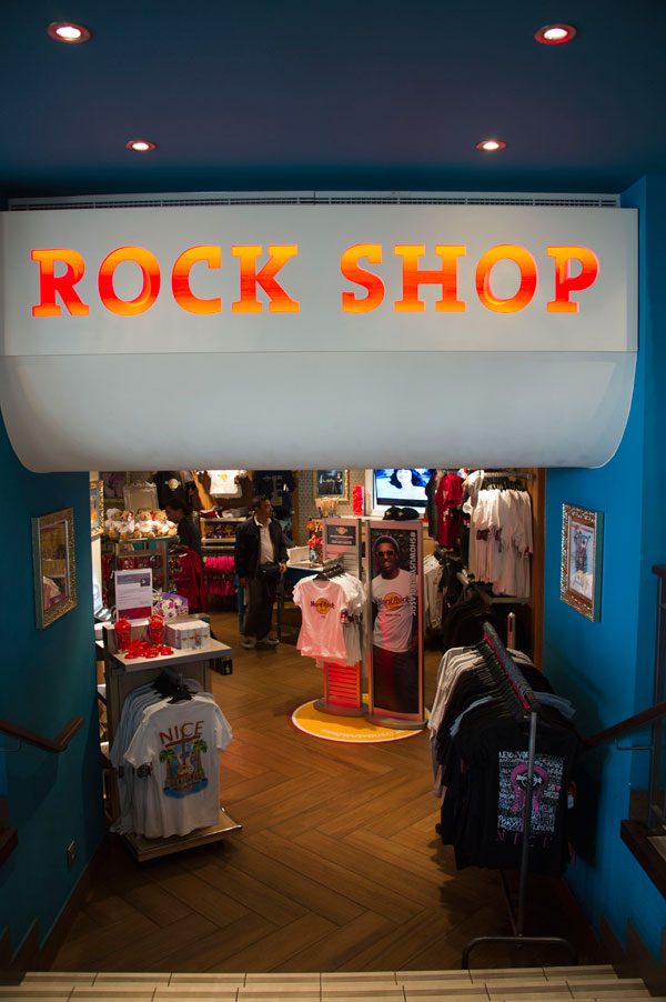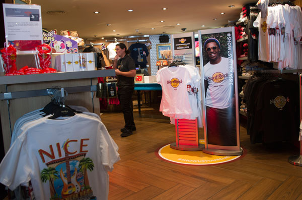 The Rock Shop Nice offers a line articles inspired by pop-rock music, exclusive collectibles and the famous Hard Rock Cafe T-shirt. The products with the Hard Rock Cafe Nice logo, offering exclusive designs, can be purchased exclusively on the premises, not online.