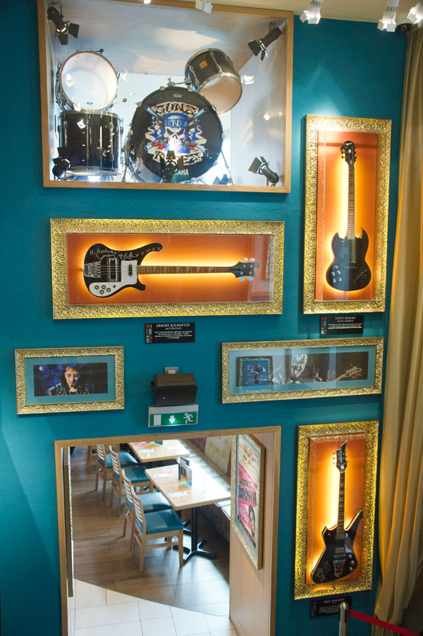 The displays of authentic, instruments, costumes, and various one-of-a-kind memorabilia adorning the walls provide a rock and roll atmosphere.