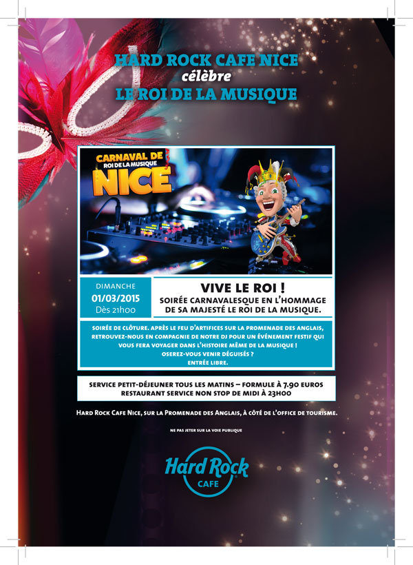 The Hard Rock Cafe Nice is following both the American and Niçois calendar, offering a range of enticing entertainment and live music program.