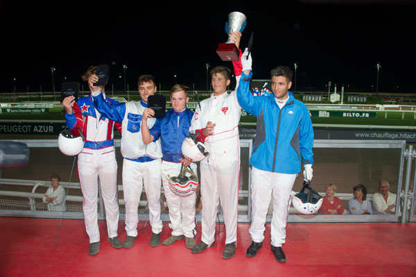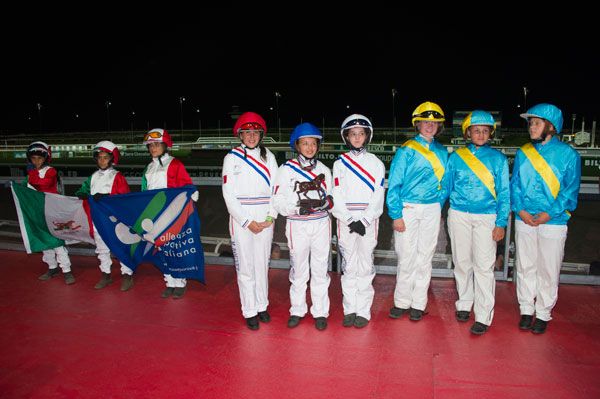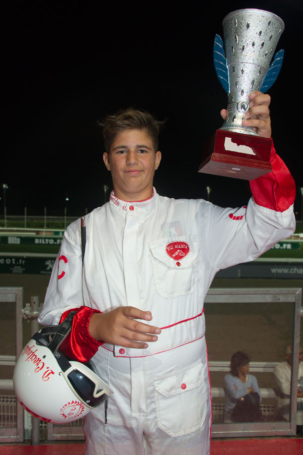 The event without mutual bet is run on a short distance of 1,550 m. 9 junior drivers raced, including three Italians, three Swedes and three French. All were dressed in islks emblazoned with the colors of their country. This race offered the public a spectacle worthy of a true international competition.
