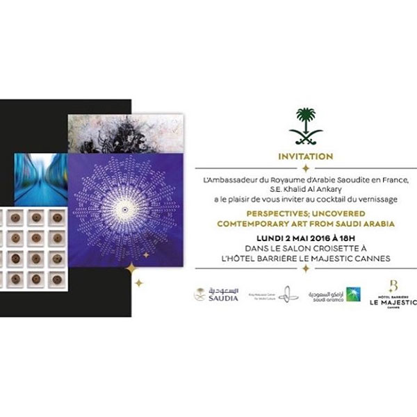 On May 3 and 4, 2016, from 10:00 to 16:00, the Salon Croisette of the Hôtel Barrière Le Majestic Cannes will host the exhibition Perspective uncovered – Contemporary Art From Saudi Arabia organized by the Embassy of the Kingdom of Saudi Arabia.