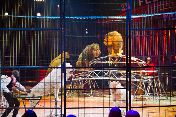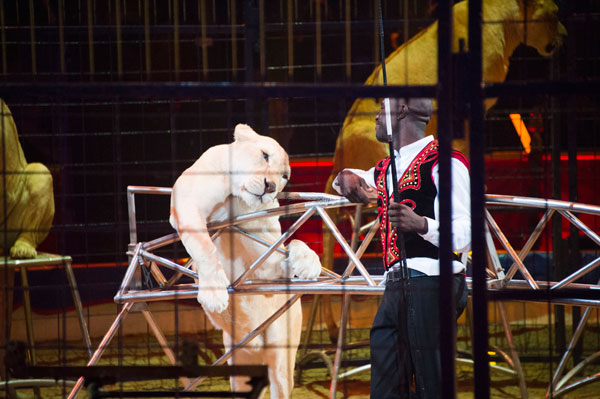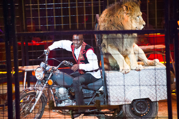 After the intermission, the young South African trainer Musa John Selepe presented 10 white lions who in collusion with him, hopped from stool to stool and one lion was driven around in a car.