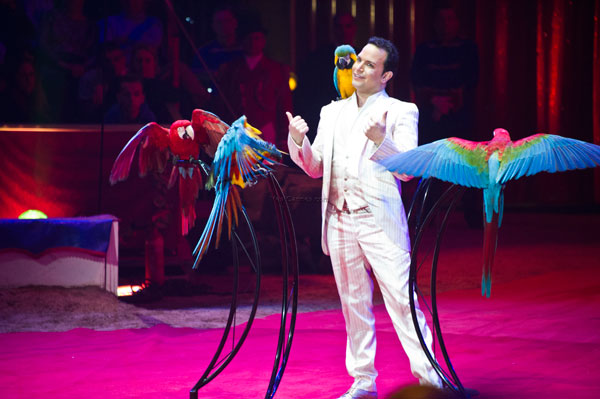 Alessio Fochesato had his Aras parrots fly freely under the dome, and a cockatoo flew in hoops before a volley of small multicolored parrots landed on children. An act full of poetry!