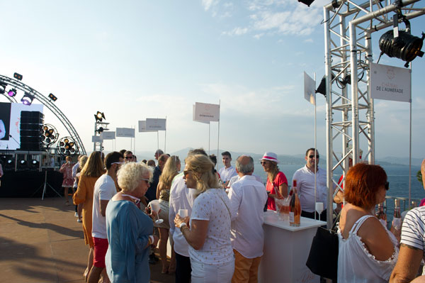 At the origin of the event, Valérie Rousselle, from the domains Château Roubine and Château Sainte Béatrice, president of the International Organization of Rosé, founder of the association of women winemakers Les Eléonores de Provence, dedicated to the promotion of the art of live and wines of Provence. This great lady of wine had invited the lighting architect Alain Guilhot, designer among others of the Festival of Lights in Lyon, to proceed to the illumination in pink of the fortress of the Citadel at nightfall. All to the sound of music with a Trio Jazz and Alejandra Burgos‘ very tonic rock, before the performance of the French DJ Cerrone on turntables.