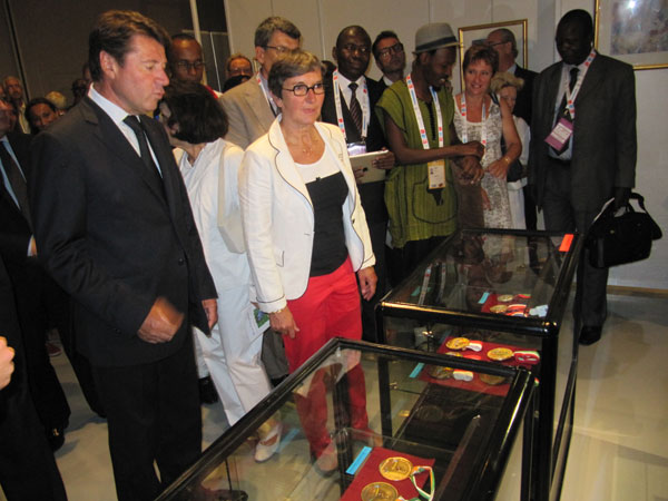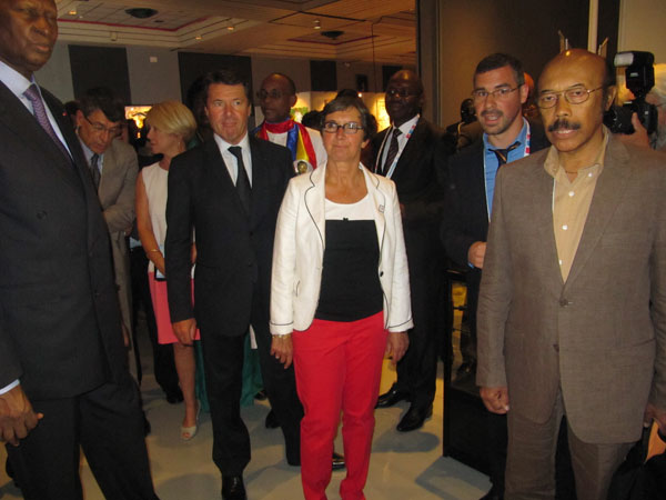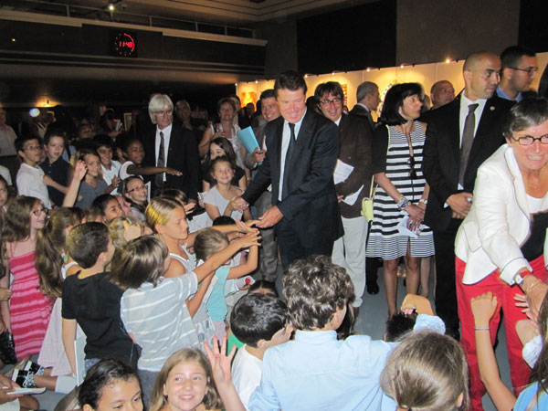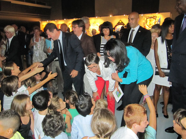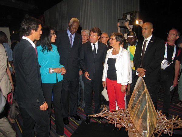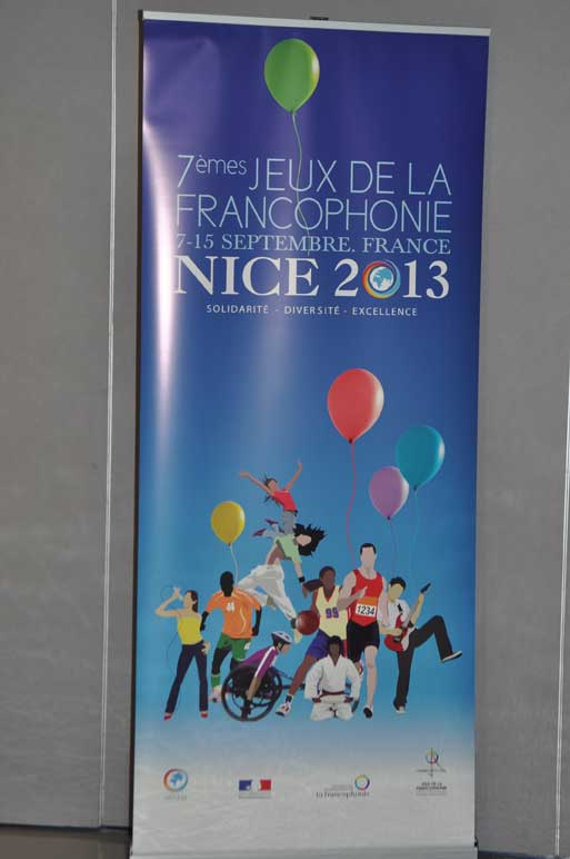 The exhibition was inaugurated by Mr. Abdou Diouf, Secretary General of the Jeux de la Francophonie in the presence of Ms. Yamina Benguigui, Minister for Francophonie, Ms. Valerie Fourneyron, Minister of Sports and Culture, Deputy Mayor of Nice Estrosi, Rector Claire Provost Lovisi, and Mr. Philippe Jourdan, academic director of the Alpes- Maritimes. The personalities met with the francophone artists and 200 pupils present that day and exchanged ideas about promoting art in the Francophonie.