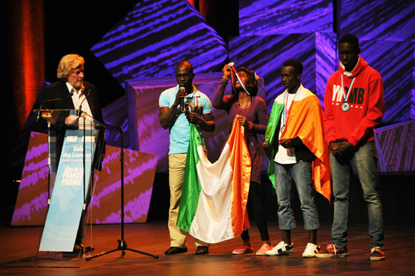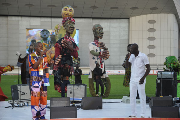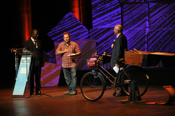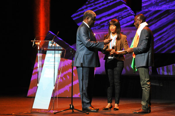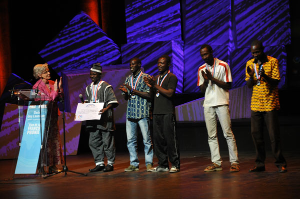 The President of the APF (Parliamentary Assembly of the Francophonie) Andrée Champagne (Senator of Canada) and honorary president of the jury, presented the APF award (a fellowship of € 7,000) to “Grandes Personnes”, a company of giant puppets from Burkina Faso, during the Gala Winners, stating “It is with great pleasure that I deliver you this award on behalf of APF!”