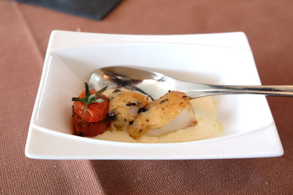 Some examples to savor: Red Mullet with Espelette Pepper, Catalane with pickled caper; Coquilles Saint-Jacques with salted Butter, Cream Cheese with Chives; Back of Cod in Olive crust, Parmesan cream and small stuffed Tomato; Roasted Wild Wolf, Little purple Artichoke and Pancetta cooked in truffled casserole…